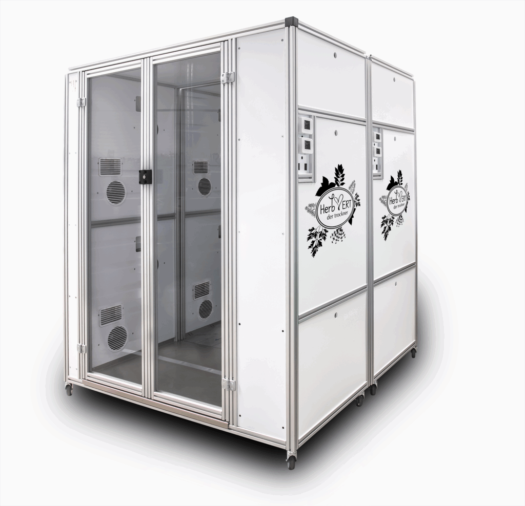 Trockenfläche ab 24 m² – Für Produktionsmengen von ca. 60 bis 500 kg pro Charge. Individuell konfigurierbar und ausgelegt für Verarbeitungsbetriebe mit hohem Kapazitäts-Durchsatz